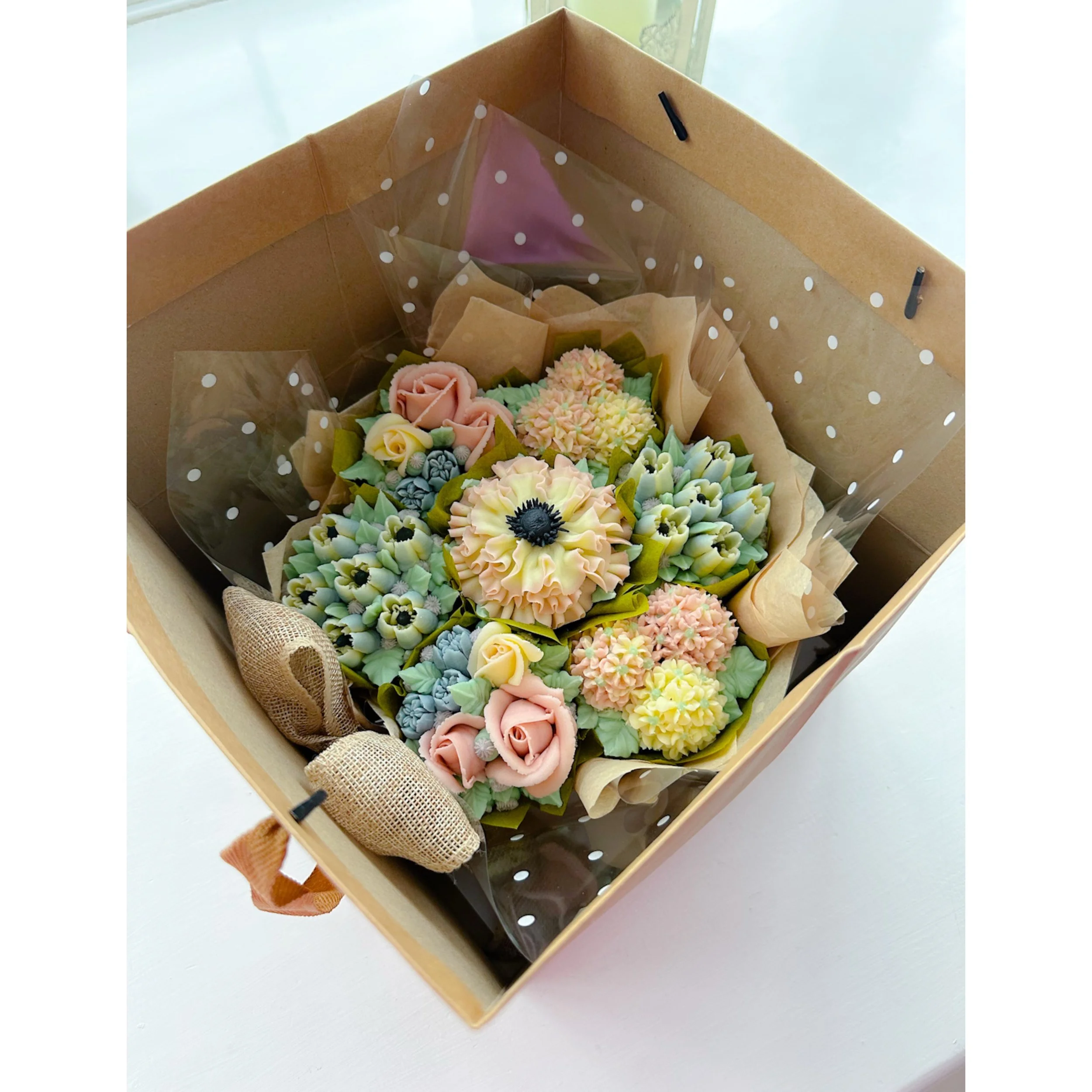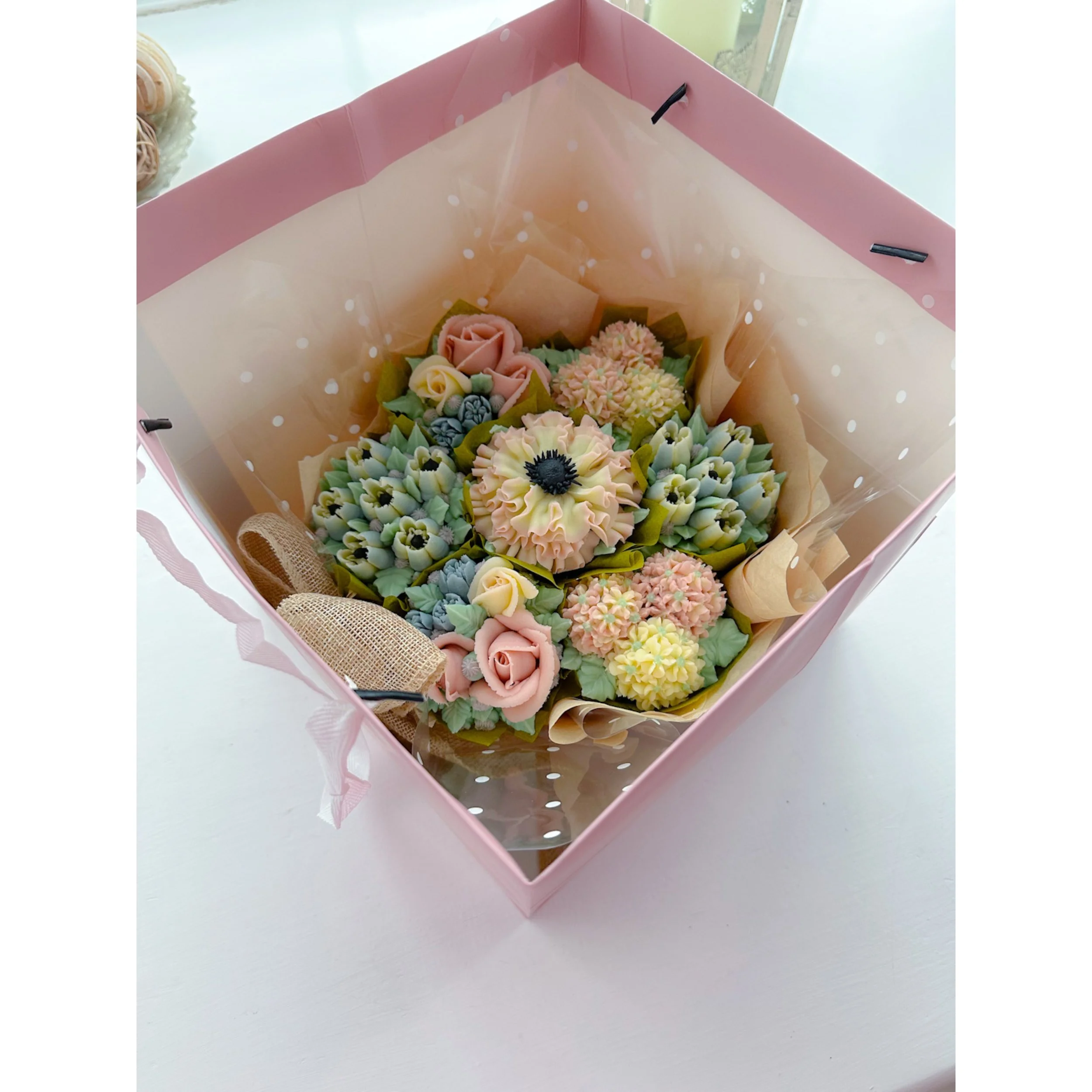 We are very excited to bring you our brand new bouquet bags designed by Kirsty. This bouquet bag in the colour eucalyptus, will hold a 7 cupcake bouquet. A beautiful way to present your bouquets. Price per bag.