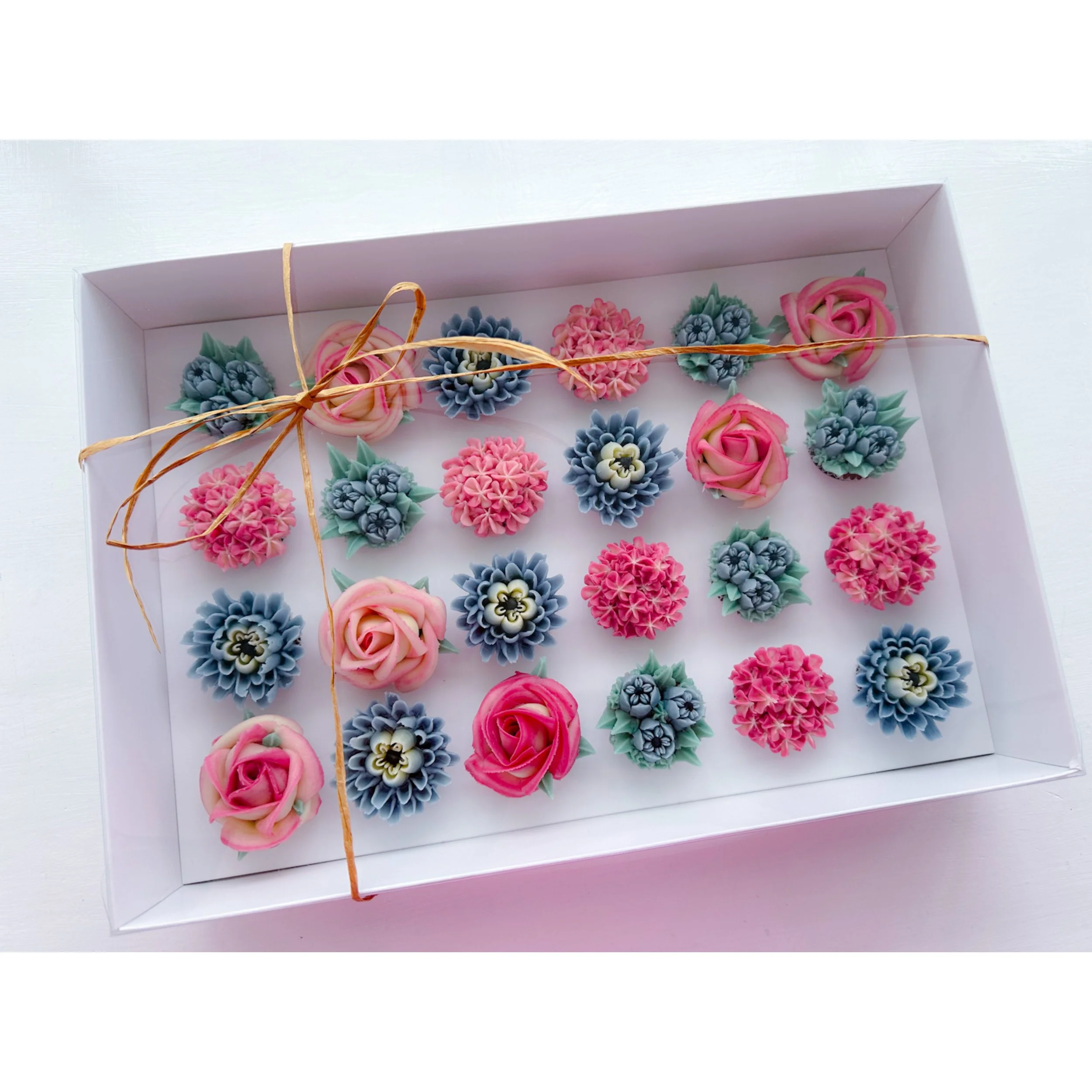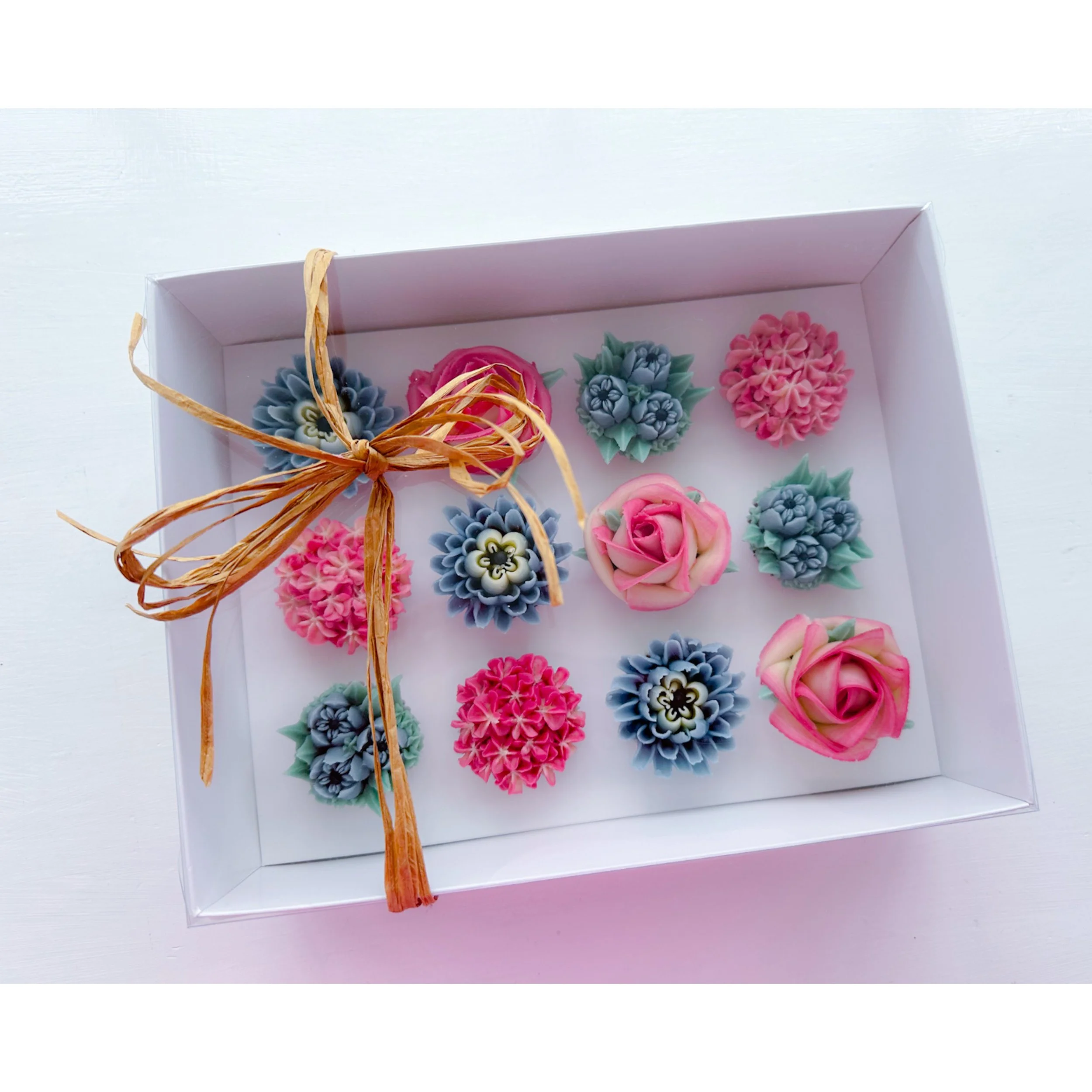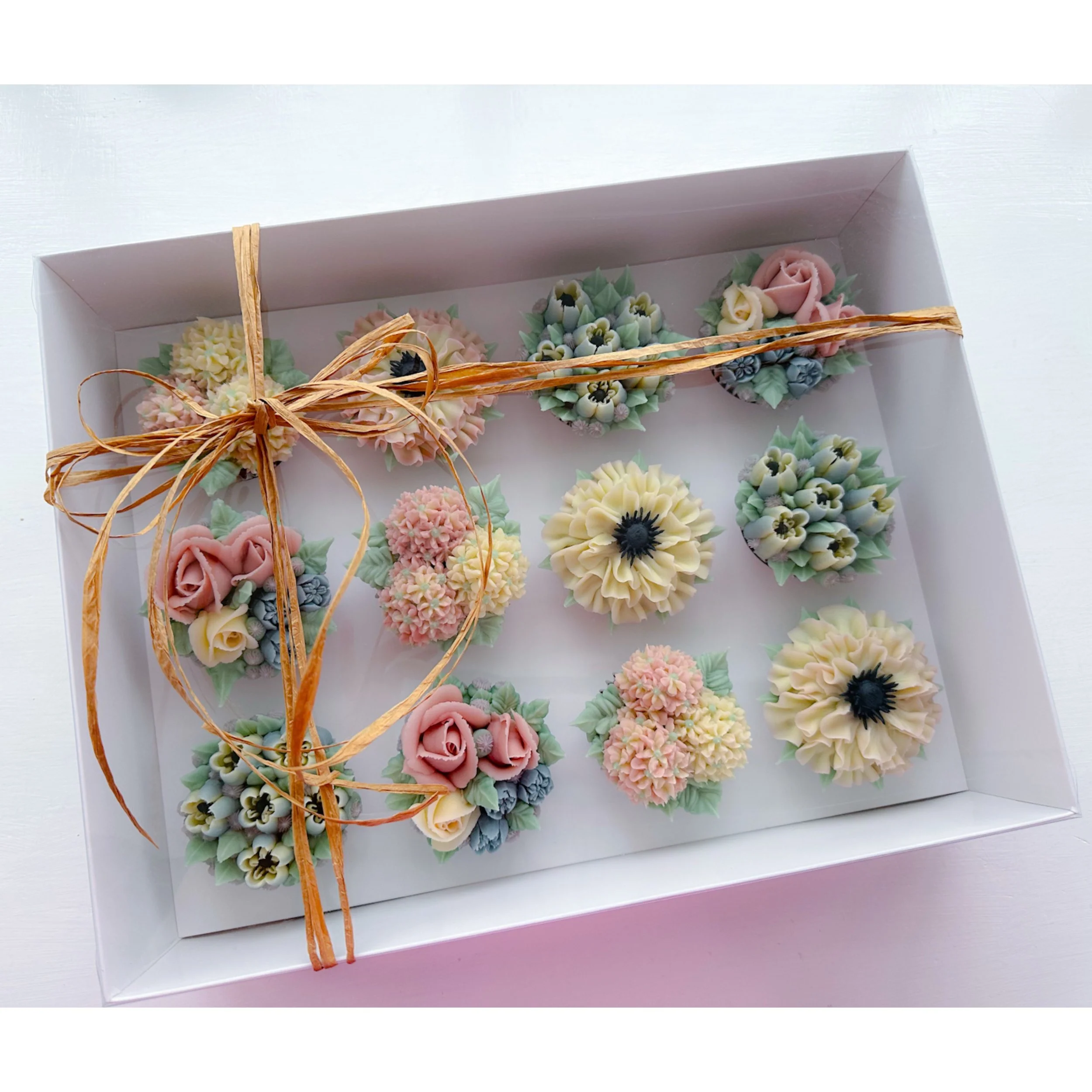KIrsty has redesigned these beautiful clear presentation boxes to make them bigger for your floral cupcakes. Larger gaps between each cupcake which means more freedom to be creative and create larger blooms. Easy to assemble and each box comes with a carry handle. Sold in packs of 10 with White inserts.