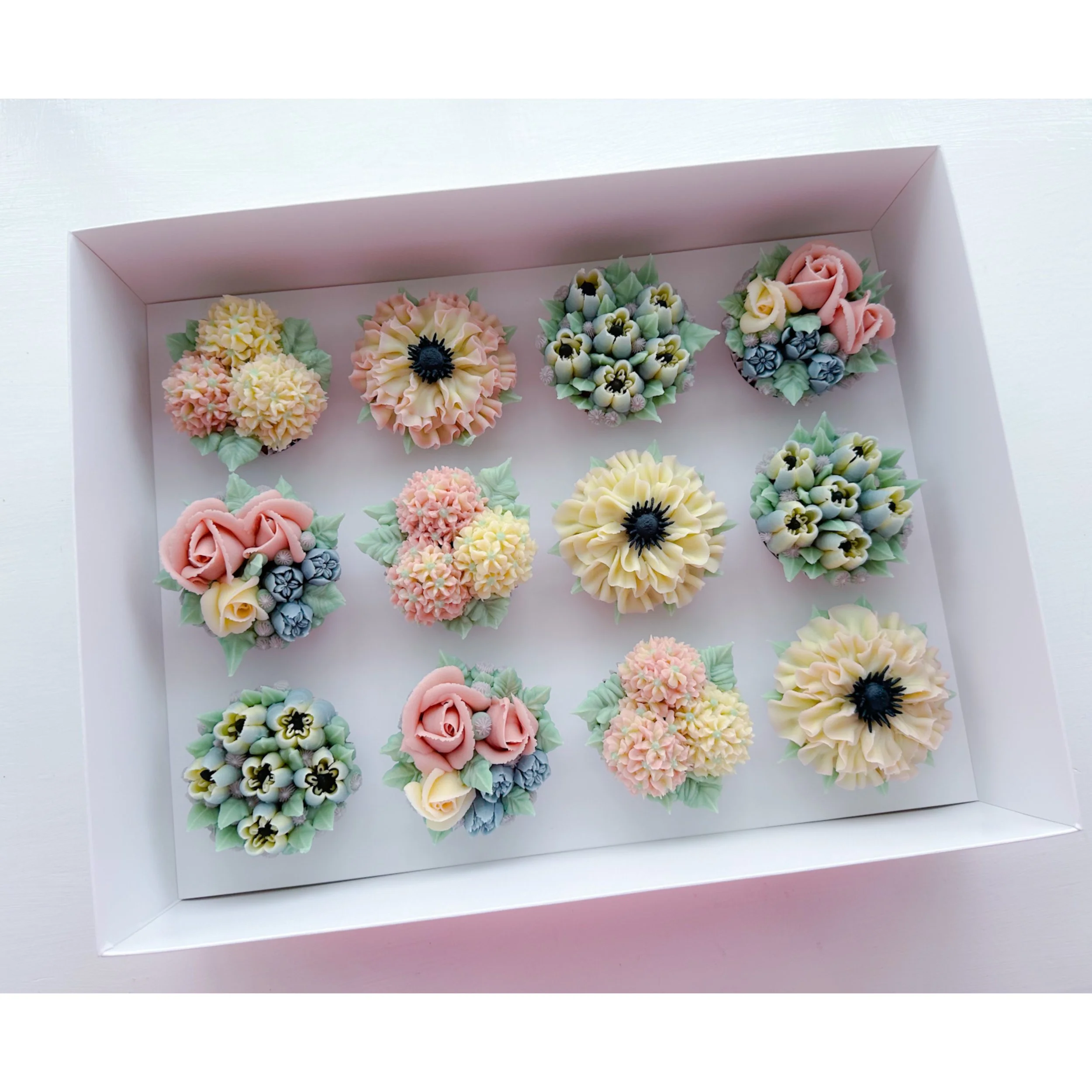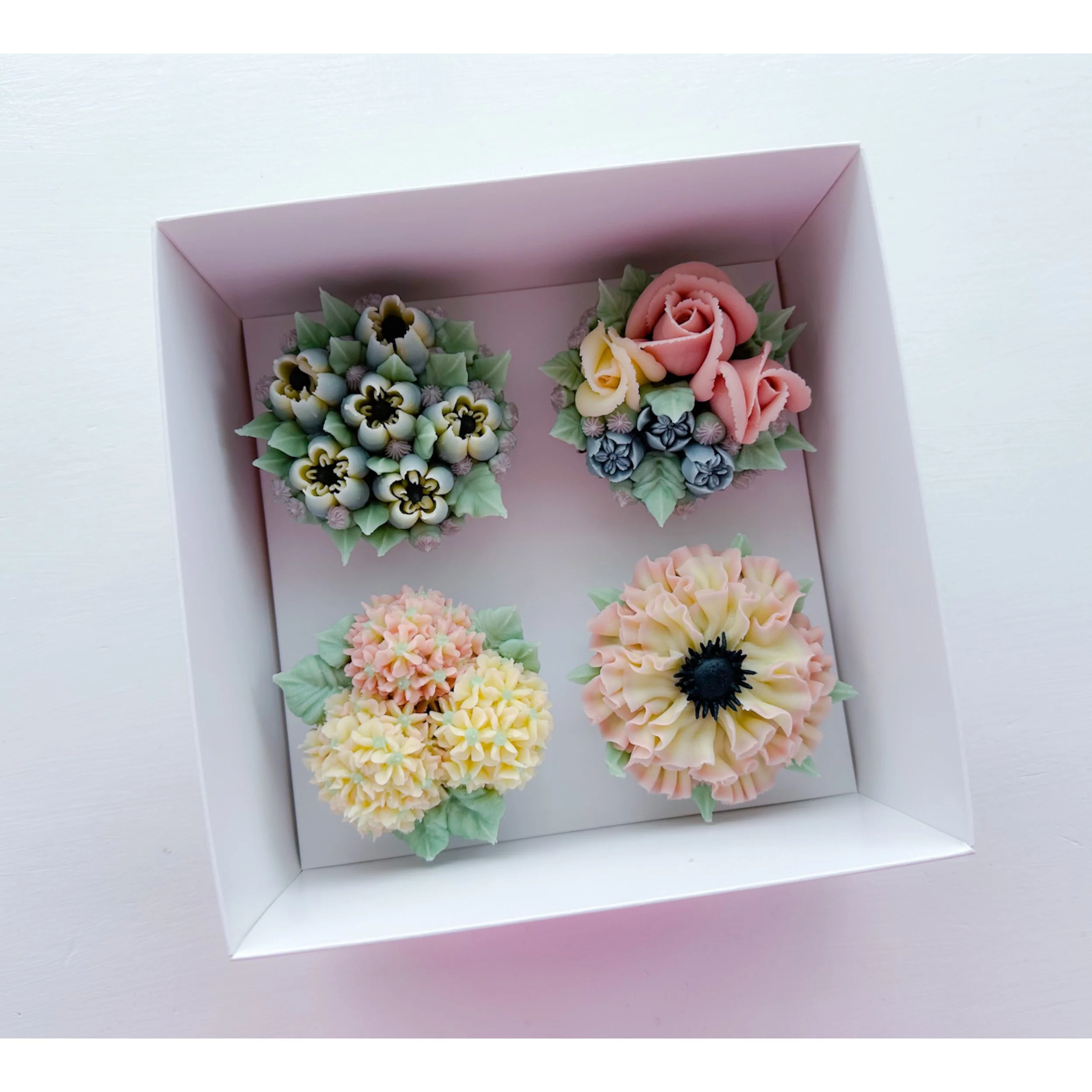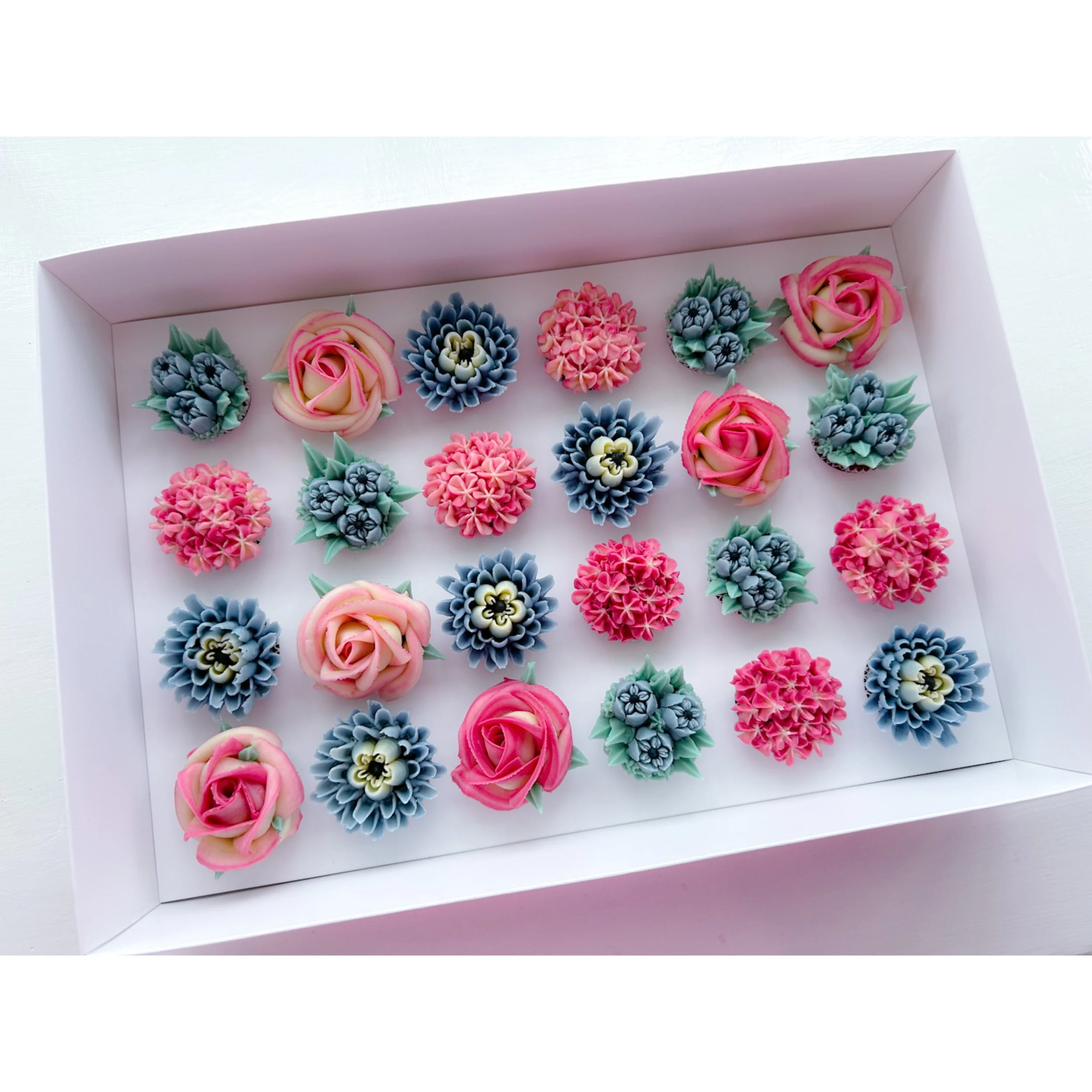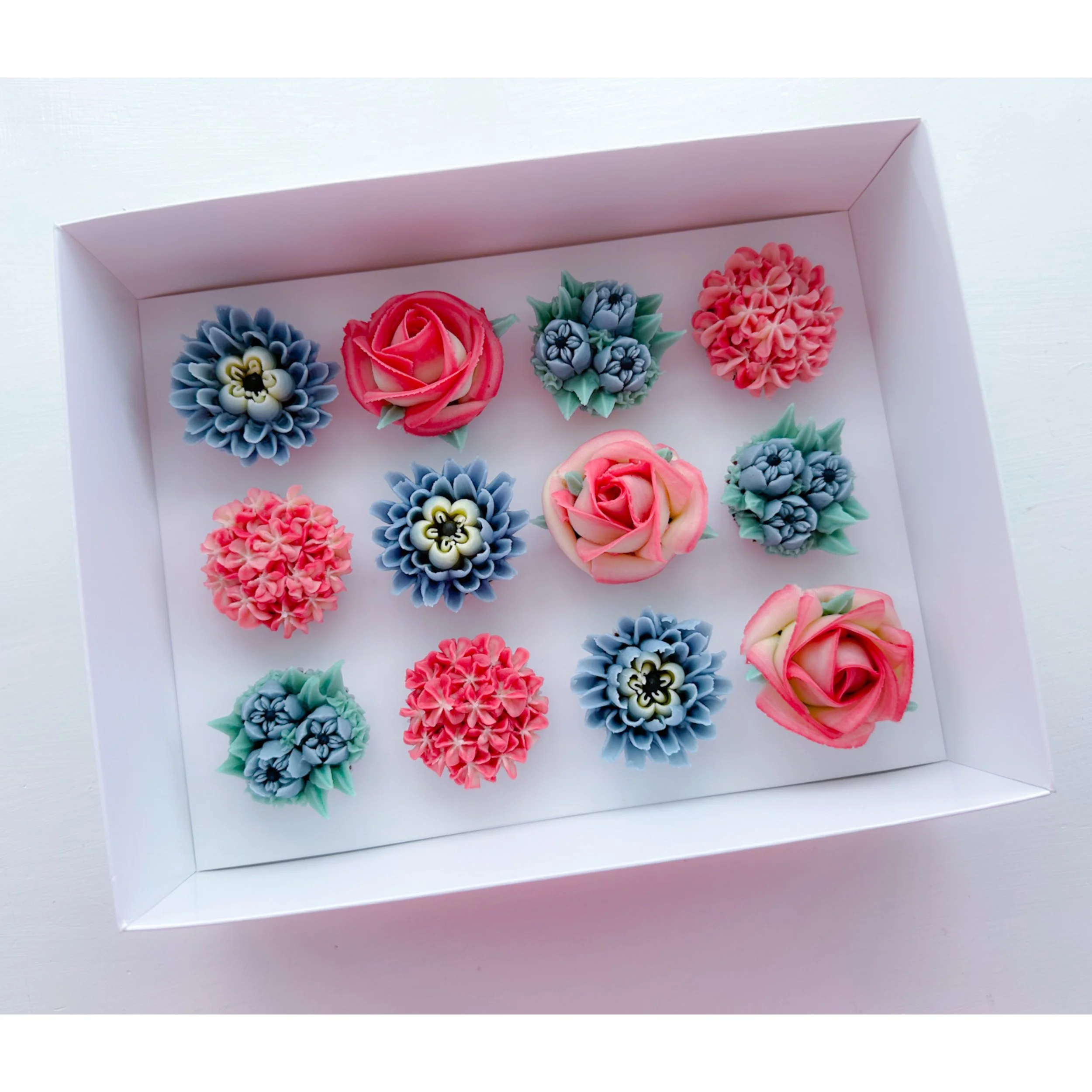 KIrsty has redesigned these beautiful clear presentation boxes to make them bigger for your floral cupcakes. Larger gaps between each cupcake which means more freedom to be creative and create larger blooms. Easy to assemble and each box comes with a carry handle. Sold in packs of 10 with White inserts.